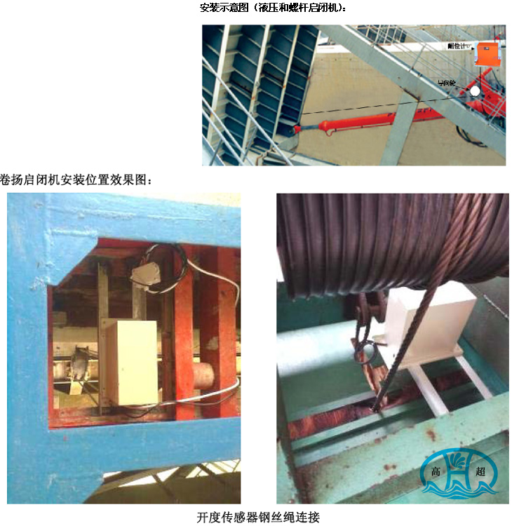 2、將本恒力收繩閘位計直立或側立安裝在適當的位置,將鋼絲繩的出繩系在液壓桿與閘門連接的位置或閘門上(盡量保證鋼絲繩與液壓桿保持平行)。(注意:鋼絲繩可拉出長度不超過設計值,如果本傳感器與鋼絲繩系繩點距離較遠可在鋼絲繩末端加接相應長度的鋼絲繩,以免拉斷內部鋼絲繩)